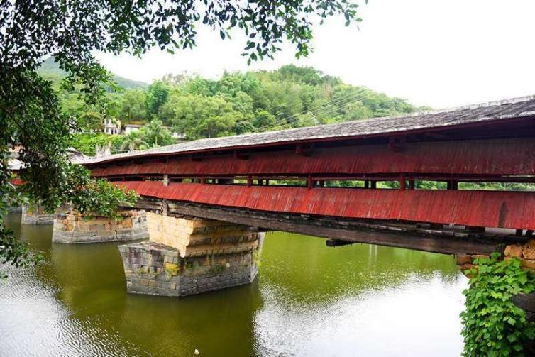 又稱"通仙橋",位于福建泉州永春縣東關(guān)鎮(zhèn)東美村的湖洋溪上。是閩南絕無僅有的長廊屋蓋梁式橋,橋基采用"睡木沉基",船形橋墩以上部分全為木材構(gòu)造,技藝之精湛,構(gòu)造之奇特實屬罕見。