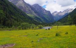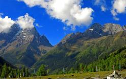 布達(dá)拉峰海拔5240米,是四姑娘山景區(qū)內(nèi)的知名景點,由于酷似布達(dá)拉宮,因此而得名。這里是雙橋溝看山最理想的地方,群山在這里聚會:向右看是獵人峰與圣母峰,兩峰連綿,好像一個睡美人;向左看是金剛山、野人峰和金槍巖,往西看,一片雪山形如雄鷹展翅欲飛。在寬闊的高山草甸上屹立著一座白塔。游客朋友來到白塔前,可以獻(xiàn)上一條潔白的哈達(dá)或者撿上一塊石頭、雙手合十,順時針繞白塔走三圈,默默許下自己的心愿。