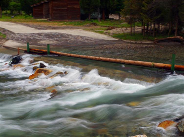 攆魚壩距雙橋溝的盆景灘4公里,海拔3500米左右,屬半沼澤地。沼澤地中蜿蜒曲折的棧道深入茂密的沙棘林中,山澗雪水沿大溝冰川懸谷飛流而下,匯入湍急的雙橋河,河中生長著大渡河流域特有的魚類—大渡裸裂尻魚。橫穿攆魚壩有條人工棧道可供步行,全長1.8公里。棧道與雙橋河依偎并行,時而穿過悠悠草坪,時而蜿蜒于浪漫樹林,可看到恢弘的大溝瀑布,也可以領(lǐng)略到草原的絲絲柔情。 2003年景區(qū)在這里開發(fā)了漂流活動。漂流河道全長4公里,貫穿整個景點,是休閑娛樂不錯的選擇。