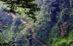鉆天坡,位于四川省中國四大佛教名山之一的峨眉山中,是其著名險(xiǎn)坡之一,具體位置在九嶺崗蓮花石與洗象池之間。鉆天坡垂直高度300米,直上2.5千米,約有32折,1500石級(jí),其石磴嶙峋,如登天梯,俗呼“鵓鴣鉆天”。近人向楚《鉆天坡》詩曰:“老殫腳力賭請(qǐng)游,笑比東坡在惠州。一樣松風(fēng)亭下路,見人心掛脫魚鉤?!绷_家倫《鉆天坡即事》詩云:“微軀原寄海大東,報(bào)國禪心一列同。云里沙彌頻合十,鉆天坡上遞詩筒。