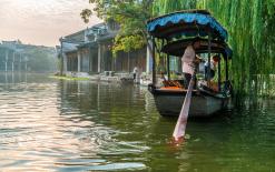 西塘位于嘉善縣北,地處江浙滬交匯處,是著名的千年古鎮(zhèn)。周杰倫的《天涯過(guò)客》MV正是在此處拍攝。一句“拱橋斜坡,水岸碼頭”惹得不少人對(duì)西塘心馳神往。在西塘,你可以細(xì)細(xì)品味這里的慢生活,可在茶樓里品茶聽(tīng)曲,或等夜晚的西塘披上驚艷外衣后,乘上搖櫓船看水中的各色倒影,偷得一份生活閑趣。