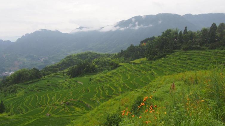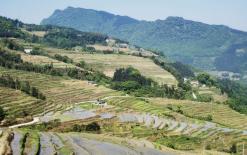 高坎鄉(xiāng)位于四川南部宜賓筠連縣,因地處崇山峻嶺之中,位于高巖之上而得名境內(nèi)有上萬(wàn)畝成片梯田,縱橫密布,櫛次鱗比,層出不窮,氣勢(shì)恢弘,腳下山花爛漫,眼前美景震撼,從近到遠(yuǎn)眺,猶如細(xì)沙白浪,層層涌向天邊。