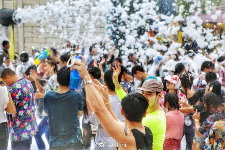 【潑水節(jié)現(xiàn)場】無論男女老少,無論潑水的還是被潑水的,都濕成了落湯雞,臉上衣服上白粉斑斑,大家依舊興高采烈。在這個傳統(tǒng)節(jié)日習(xí)俗里,潑水預(yù)示著辭舊迎新,祝福著吉祥、幸福,一向友善、謙和、有禮的泰國人在這個節(jié)日里展現(xiàn)出他們的熱情與瘋狂。