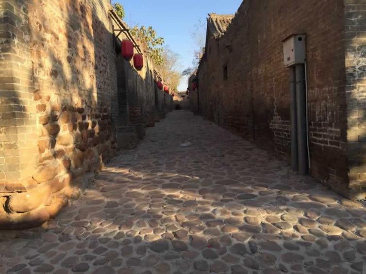 特色景觀:村子里除了保存完整的“天地廟”、馬鞍形屋頂、雕刻精美的石雕、木雕、磚雕、前后影壁墻、千年古槐外,在一條伸展雙臂便可以觸碰到兩側(cè)墻壁的胡同里,前后兩排院落依照風(fēng)水學(xué)中所說(shuō)的“有錢(qián)難買(mǎi)東南缺”,統(tǒng)一在東南方向露出將近半米的缺角,使小胡同顯得更為狹長(zhǎng)。