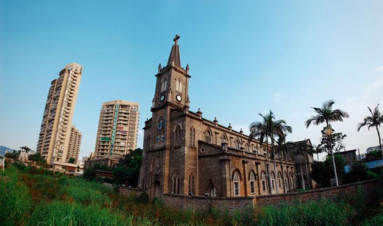 泛船浦天主教堂,福建省級(jí)文物保護(hù)單位,始建于清同治三年(1864年),民國(guó)22年(1933年)重建,占地8400平方米,建筑面積1253.7平方米,為哥特式建筑。主堂北端,建有20多米高的鐘樓,樓頂豎立近3米高的十字架。昔時(shí)鐘樓報(bào)時(shí)聲揚(yáng)十余里,號(hào)稱“江南第一大堂”,其至今仍為福建最大的天主教堂,為福建省、福州市天主教總堂。