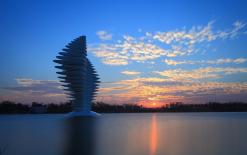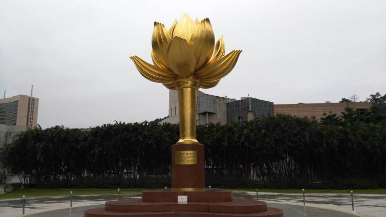 1999年12月20日,澳門回歸祖國的第一天,由我國國務(wù)院贈送的大型鑄銅貼金雕塑“盛世蓮花”于綜藝館前金蓮花廣場揭幕,這兒也因而成為了澳門回歸紀念景點。 盛世蓮花 “盛世蓮花”主體部分由花莖、花瓣和花蕊組成,共16個造型,選用青銅鑄造,表面貼金,重6.5噸;基座部份由23塊赤色花崗巖相疊組成。雕塑總高6米,花體部份最大直徑為3.6米。蓮花是澳門特別行政區(qū)的區(qū)花,蓮花盛開 、婀娜多姿、冉冉升騰,象征澳門永久繁榮昌盛。三層赤色花崗巖相疊的基座,形似蓮葉,寓意澳門三島。