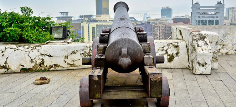 大炮臺坐落大三巴牌坊鄰近的柿山上,建于1616年,旨在防備荷蘭人和海盜襲擊。現(xiàn)在是澳門重要的前史奇跡之一,在炮臺上能夠觀賞百年古炮和俯視澳門美景,還能夠同時旅游周圍的澳門博物館。