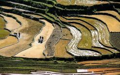 去德天瀑布,美的不止本尊,還有路邊的風(fēng)景。沿途風(fēng)光迷人,一路青山綠水白云縹緲,地里蔗浪滾滾起起伏伏,空氣中散發(fā)著百花的芳香。進(jìn)入大新縣后,又是另一番景色,遠(yuǎn)近聞名的噶斯特地形就開(kāi)始顯露,平地上一顆顆聳起的堅(jiān)硬石頭山包站在甘蔗海中。綠水梯田,小橋流水,綠草茵茵,仿佛進(jìn)入畫(huà)境一般。特別是來(lái)到離德天瀑布不遠(yuǎn)的地方時(shí),景色則更加漂亮。綠色的河水蜿蜒地纏繞在群山翠嶺之間,綠樹(shù)纏繞山澗飛流,風(fēng)光俊朗山青水秀,碧流潺潺炊煙裊裊,原生態(tài)的自然風(fēng)光,特有的壯鄉(xiāng)民族風(fēng)情,這山、這水似乎與甲天下的桂林山水有些神似,但又顯得更加原始粗狂。一路景色著實(shí)不錯(cuò),可惜了不能下車拍照。德天瀑布的近景就是這樣完了,然后是大約幾分鐘的路程會(huì)向上爬……