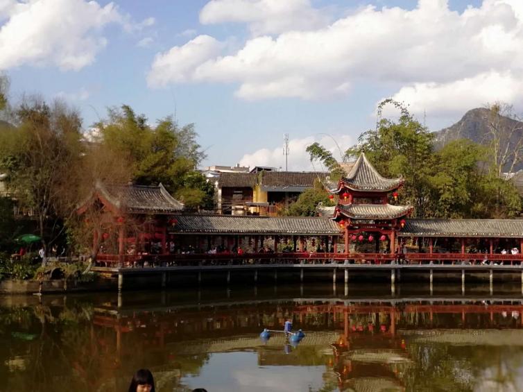 與麗江、鳳凰那些熱門的古鎮(zhèn)相比,黃姚古箏確實(shí)顯得十分恬淡。古鎮(zhèn)被四周青山包圍著,這些可愛的小山就是喀斯特地貌的小山峰。再加上不便利的交通,使得這座古鎮(zhèn)生活氣息濃重許多。