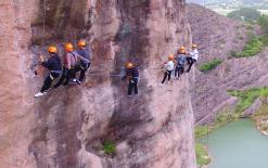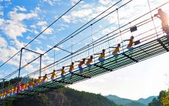石牛寨景區(qū)王牌項(xiàng)目,很多人慕名前來挑戰(zhàn),飛拉達(dá)項(xiàng)目共分A、B、C三條線路,離地200米,共長800米,難度為中等。先去起點(diǎn)處的工作人員那領(lǐng)取攀巖裝備,等裝備穿戴完畢后。開始穿越云巖湖,然后橫跨巽卦石到達(dá)大茅寨頂峰,整個(gè)高度落差將近有200米