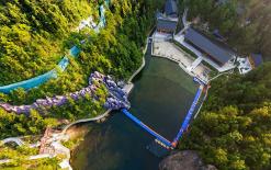 路線二:石佛山索道—云巖湖—VR冰雪體驗(yàn)館—十里絕壁、百里丹霞—玻璃棧道—仙人海(喊泉、搖橋)—玻璃橋、懸崖秋千、步步驚心