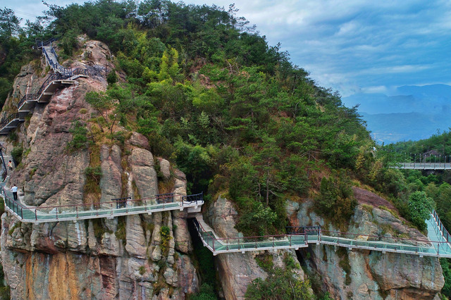 全長310米,垂直落差360米,特制的雙層夾膠玻璃厚度達(dá)48毫米,具備極強(qiáng)的耐壓耐磨、抗沖擊、非常安全,婉若游龍,盤桓在懸崖峭壁之上,翩落驚鴻,是一種逸靜中的驚險(xiǎn)刺激