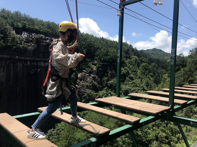 行走其上,就像踩在云端,每一步都踏在心尖上!真正站在數(shù)百米高的懸廊之上,你就會(huì)知道什么是開頭難結(jié)尾難,不前不后最為難,能不能邁開腳步打破恐懼,就看你是不是擁有一顆強(qiáng)大心臟!