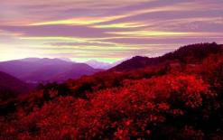 它們郁郁蔥蔥的彰顯著夏日的生機(jī)和熱情。順溝向西遠(yuǎn)遠(yuǎn)的望去,一道青色的高聳入云的山峰南北橫亙在哪里,象一道天然屏障巍峨雄壯,青色的巖壁兩旁自西向東又坐落著兩座紅色的山峰。