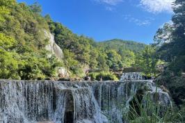作為山,全程都沒有什么山路,臺階極少,全程以石頭跨過小溪流的行走模式為主,極富樂趣,適長期沒出門運動的小朋友上手。作為水,它該有的水景都有:大一點的瀑布、小一點的溪流、可以撈魚的場子、下水嬉戲的樂園、穿瀑而過的小路,雖然小一點,但應有盡有。