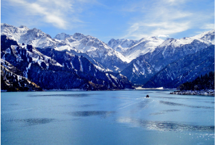1、天山天池古稱“瑤池”,位于新疆維吾爾自治區(qū)昌吉回族自治州阜康市境內(nèi)。天山天池湖面海拔1910米,南北長3.5公里,東西寬0.8~1.5公里,最