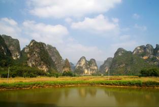 1、清遠英西峰林走廊當中溪澗河流穿繞,巖洞和古建筑點綴其間,農(nóng)舍星羅棋布,充滿了田園風(fēng)光的鄉(xiāng)土氣息,被譽為“南天第一峰林風(fēng)光”!