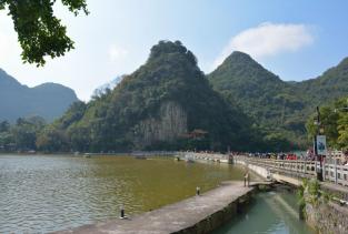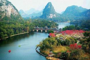 一.柳州大龍?zhí)毒皡^(qū)大龍?zhí)讹L(fēng)景區(qū)林木蒼翠、群山環(huán)抱、自成屏障,臥虎山、美女峰、孔雀山等二十四峰形態(tài)各異,聳立于一湖(鏡湖)二潭(龍