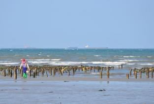東山,藍(lán)天白云下面一片神秘的海域,人們在貼近海面的沙灘上行走、奔跑、嬉戲,畫面美輪美奐,風(fēng)景絕美但卻相當(dāng)?shù)驼{(diào),趁著假期,驅(qū)車帶領(lǐng)家人