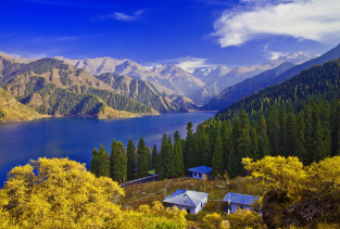 一.新疆天池天池位于天山博格達(dá)雪峰半山腰,湖的面積不到5平方公里,湖水最深處約100米。天池的四周山腰上有形如寶塔的云杉林,背靠著海拔540