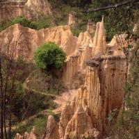黃聯(lián)土林林位于四川省涼山彝族自治州西昌市南30公里的黃聯(lián)關(guān)鎮(zhèn),,是發(fā)育在一套冰水凍融泥石流堆積體之上的地貌景觀。土林氣勢宏大,造型各異。這是一處缺乏保護的自然遺跡,景區(qū)內(nèi)已經(jīng)能看到傾倒的土柱,但是這一自然“博物館”卻向世人展示著大自然的鬼斧神工。