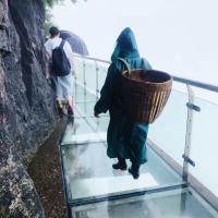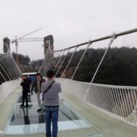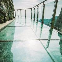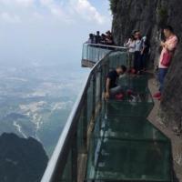 天門(mén)山玻璃棧道是天門(mén)山國(guó)家森林公園天門(mén)山頂游覽線路西線中的一段。懸在天門(mén)山頂崖壁上的棧道中,有大約60米是由玻璃搭建的,膽小的人走在上面腿可能會(huì)軟。在上玻璃棧道前,游人會(huì)被要求穿上鞋套,以免鞋子直接踩上去把玻璃踩花。但由于天門(mén)山霧氣很大,使得玻璃不那么透明,加上山崖壁上伸出樹(shù)枝等,遮擋了玻璃下面的深淵,所以走在上面沒(méi)有什么感覺(jué)。