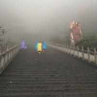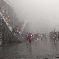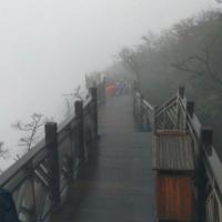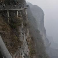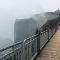 我去天門(mén)山玻璃棧道的當(dāng)天,天氣預(yù)報(bào)說(shuō),多云。滿懷信心去了,結(jié)果山頂上全是霧,而且還下著小雨。碰到一位老先生,東、西、中三線都走了,我很納悶,問(wèn)他,您什么都沒(méi)有看到啊! 他幽默地回答:“看到啦,霧啊”!回答得好,這一趟2個(gè)人花了四百多元門(mén)票,就是看霧,但我不后悔。