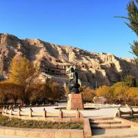 新疆克孜爾千佛洞位于新疆自治區(qū)拜城縣東南約60公里處??俗螤柺蔷S吾爾語(yǔ)的譯音,是"紅色"的意思。洞窟開(kāi)鑿在木札提河北岸明屋達(dá)格山的峭壁之間。現(xiàn)存洞窟有編號(hào)的有236窟,其中的洞窟形制較為完整、壁畫(huà)遺存較多的約占三分之一。根據(jù)洞窟的形制特點(diǎn)、壁畫(huà)的題材和藝術(shù)風(fēng)格等方面的原因分析,并經(jīng)放射性碳素?cái)喽〞r(shí)代,石窟主要是四至八世紀(jì)的遺存,可大致分為早、中、晚三期,是龜茲石窟的典型代表。