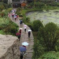 青巖古鎮(zhèn)基本上都是用巖石磚塊建筑而成的,由于貴陽天氣原因,在磚塊潮濕的地方自然而然就生長了大量的綠色植物。登上古城墻,眺望整個(gè)青巖古鎮(zhèn),你就會發(fā)現(xiàn),周邊群山環(huán)繞、整個(gè)古鎮(zhèn)形狀呈現(xiàn)一個(gè)口字;這樣依山而建的城堡具有“易守難攻”的特點(diǎn),在古代冷兵器時(shí)期,它發(fā)揮了極具重要的軍事要塞作用。進(jìn)入古鎮(zhèn)內(nèi),被它“天然的氣質(zhì)”迷住了!大大小小的青巖磚樓非常有秩序的樹立在地面上,且每一部分都各具特色,突然有種返璞歸真的感覺。古鎮(zhèn)里不少老房子由于旅游發(fā)展沒有被拆遷,反而被修繕地更好了。人們把自己的房子騰出來供人參觀或者直接裝修成獨(dú)具特色的小鋪面;其實(shí)這將古鎮(zhèn)上的每個(gè)人與旅游發(fā)展之路有機(jī)地結(jié)合起來了,每個(gè)古鎮(zhèn)人都是該