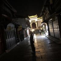 下午6時(shí),我們出門游逛青巖古鎮(zhèn)的時(shí)候,各類門市熱鬧營業(yè),吃過晚飯大約九、十點(diǎn)鐘,小鎮(zhèn)的大部分商家已經(jīng)關(guān)門歇業(yè)。這時(shí)候,小鎮(zhèn)的浮華褪去,盡顯古樸質(zhì)拙。這趟旅行中,古鎮(zhèn)中我最喜歡的就是這里。古鎮(zhèn)里古跡眾多,雖經(jīng)修繕,但很和諧的與未經(jīng)改造的民居混雜在一起。晚上十點(diǎn)左右,空蕩的街道上,石板路黝黑地反射著燈光,讓人感嘆歲月靜好。