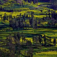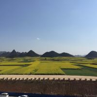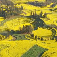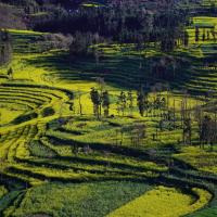 螺絲田距離羅平縣城30分鐘的車程,就在公路邊上觀賞,非常漂亮。最好在12點(diǎn)以后去看,當(dāng)然得是晴天,太陽在正中的位置,光線灑落在柔美造型的花田上,美輪美奐。如果有藍(lán)天白云則是最美的風(fēng)景。
