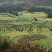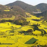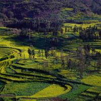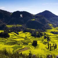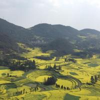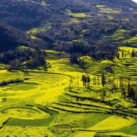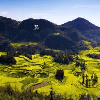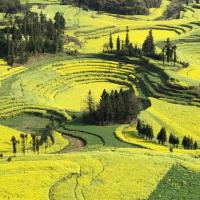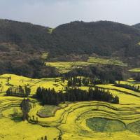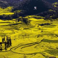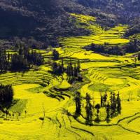 螺絲田位于羅平城的西北,這里的油菜花以同心圖案梯田的形式種植,遠(yuǎn)看仿佛螺絲上的紋路,因而得名。羅平在二月中旬即迎來油菜花海,時(shí)間居全國最早。