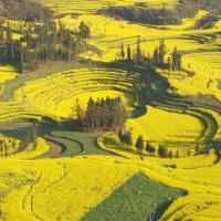 羅平螺絲田景色很美,菜花花桿直徑在2公分--3公分,高度在170公分左右,也是全國最早開花的油菜花田,春節(jié)期間正是盛花期。羅平油菜花海分主會(huì)場(chǎng),金雞峰叢,螺絲田,革崗則是梯田菜花!