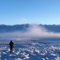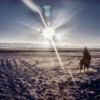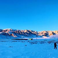 冬天來到巴音布魯克。時(shí)間也許不對(duì),但看到的景色絕對(duì)是這輩子讓我終生難忘的,踏在評(píng)論厚度超過30cm的雪中。平均溫度在—35℃到—25℃之間。每走一步似乎都無比的艱辛,最后搭車進(jìn)了巴音布魯克大草原內(nèi)部,感謝熱情的牧民。還在一家蒙古族人家吃了一頓難忘的晚餐。雪中的巴音布魯克不僅僅是蒼茫的天涯,更有冬牧的牧民,在如此寒冷的環(huán)境中放牧,不得不的說,讓人肅然起敬。過去遞給兩個(gè)牧民煙抽的時(shí)候,他們都非常開心,不過因?yàn)檎f不好漢語,但是足夠感覺到他們的淳樸與熱情。后來我又獨(dú)自一人走到了巴音布魯克鎮(zhèn)上的喇嘛廟的山頂,俯瞰整個(gè)巴音布魯克鎮(zhèn)的感覺真的是太棒了,下山的時(shí)候繞到喇嘛廟里,里面有個(gè)大師傅熱情的招待了我,濃