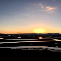 巴音布魯克大草原 是太陽升起的地方 我們觀賞夕陽日落 醉美醉美美艷動(dòng)人 新疆巴音布魯克大草原,是中國第二大草原。 蒙古語為永不木古竭的甘泉。 當(dāng)汽車跨越崎嶇的山路,皚皚凍雪層。 突然眼前出現(xiàn)白云翻卷,滾滾涌動(dòng)。 遠(yuǎn)處天地合一。云海波濤澎湃。 太陽升起的地方。醉美。醉美。醉美。 落日緩緩下沉,夕陽灑滿云間。 太陽似不愿離去,步步回頭,依依惜別。 難舍難分情難斷,白天不懂夜的黑。 我愿跨越萬水千山,癡情迷戀。 眾里尋他,百轉(zhuǎn)千迴。 疑是仙境,太陽升起的地方。