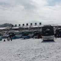 神農(nóng)架國際滑雪場沒去之前感覺應該還可以,去過之后覺得非常好。選擇下雪天過去,本來心里很擔心安全問題,怕被厚雪鋪著的盤旋的山路,但是過去后發(fā)現(xiàn)很多旅游大巴好幾十輛都在跑,忽然心里就踏實了,發(fā)句感嘆:司機好牛。據(jù)神農(nóng)架同學說下雪天去滑雪真雪多,滑起來更有感覺,讓我更加覺得選擇對了。還有帶我們的小何導游人很好,一路上讓我們感覺時間很好度過。不過跟團睡不了懶覺哦,凌晨四點起床五點出發(fā),從木魚鎮(zhèn)到滑雪場,六點等我們到時已有17輛47座大巴在山腳下的大門口侯著,其他小車不算,后面還有陸陸續(xù)續(xù)的大巴,那場景一個壯觀,而且還下著大雪,為了滑雪小伙伴們都拼了,那時感覺導游還是有經(jīng)驗的好,不然我們就得等下一批了。