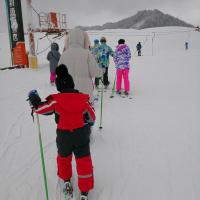 來神農(nóng)架滑雪場憑短信交每人500元押金進場。請了個滑雪教練,單人150.兩人每人120合計240按一小時記。兩口子拼一個教練似乎合算,其實教練教一個人,就不能顧及另一個人了,教練重點教我家人,我只能領略要點自己練習了,一小時飛快,教練離我們而去,雪場人正中午不多,下午就來了不少人,如果防寒設備到位,滑雪還是很好的,不過建議不要帶過多的東西在身上,否則是個累贅,嚴重影響興致。預定的全天,玩了四小時,體力跟不上,再加上冷得夠嗆,就結束出來吃東西了。第一次滑雪,雪場不錯