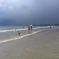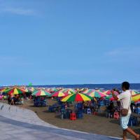 個人覺得還算不錯,景色可以,就是大排檔的做法太垃圾。建議不用吃海鮮。一家三口開車過來,中午的太陽太曬了。故此下午才去海灘泳游,黑沙灘的沙粒很犀利,如面粉一般,晚上可以去吃吃燒串,尤其是烤魷魚,再喝點啤酒,人生愜意啊。