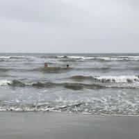 白浪灘的沙灘特色就是黑色沙灘,但沙子還是比較細,往海里伸下去的坡比較緩,很適合游泳,我們去的時候下了大雨,在大雨中海里游泳還有別一番風味!周邊好像沒什么換衣服沖淡的地方,但你要是在附近飯館吃飯,每家飯館都有換衣服沖涼的地方!