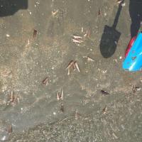 去白浪灘沖沖浪倒是可以,去那邊買了套泳衣很實惠,沙灘很寬,人也比較多。比較有意思的是小小的螃蟹,遍地都鉆出些小孔,很容易就能捕捉很多小螃蟹,小孩子比較喜歡。偶然間還發(fā)現(xiàn)了幾個海五星,挺開心的。
