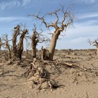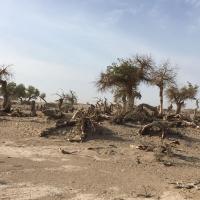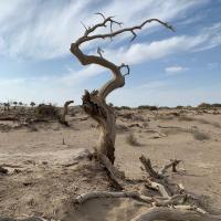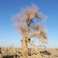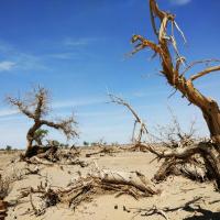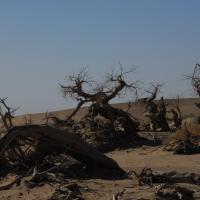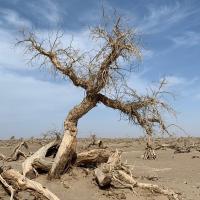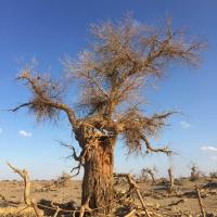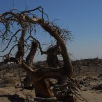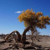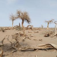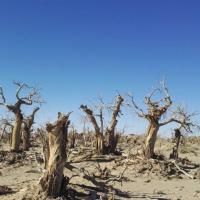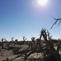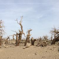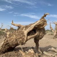 去年十月份去的怪樹林由于水源不足,胡楊樹木枯死,枯木慘狀凄涼。生而千年不死,死而千年不倒,倒而千年不朽。