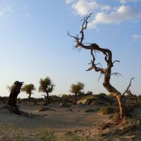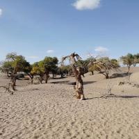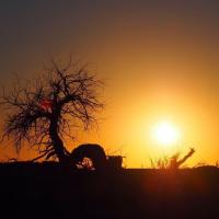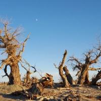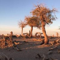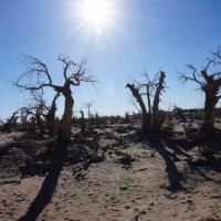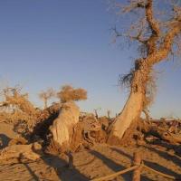怪樹林這不是一個(gè)有趣的景點(diǎn),但景觀絕對獨(dú)特。這是因黑河上游用水無度,導(dǎo)致下游缺水,大片胡林樹缺水死亡,陳尸遍野造就的獨(dú)特景觀。胡楊樹或死而挺立不屈,或倒而不朽,枝干扭曲,似乎是對死亡的抗?fàn)?,對生命的渴求。夕日西下,林?nèi)則猙獰詭異。這是一片生態(tài)保護(hù)的警示林,希望來者都能有所醒悟。