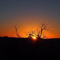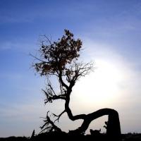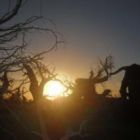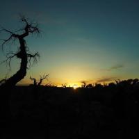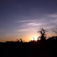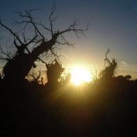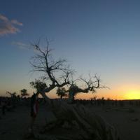 人們都說怪樹林在夕陽西照時(shí)最傳神,我們趕在日落前進(jìn)了林子。到處都是人們端著相機(jī)在等待著。 日落時(shí),怪樹林里涼風(fēng)習(xí)習(xí),游客們個(gè)個(gè)端起相機(jī),拍啊拍啊。我對著落日一張,轉(zhuǎn)過身來一張。不停的拍。 夕陽下,不朽的胡楊難以言狀的美。她在訴說著什么?我能猜的著。 轉(zhuǎn)眼間太陽就沉下去了,一片昏黑。以前沒發(fā)現(xiàn)日落這么短暫。沒拍了幾張呢。
