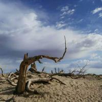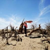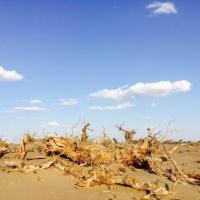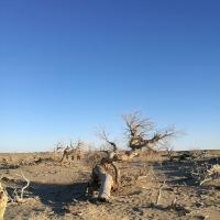 怪樹林是攝影師的拍照天堂,也是倒地胡楊千年不朽的地方。由于河道的改變,讓這里上千畝的胡楊林枯死,形成千姿百態(tài)的枯枝干,這些千年不倒的樹干,在風(fēng)中凌冽,形成各種各樣的形狀,有一種悲壯又震撼的感覺,隨手一拍都是大片。