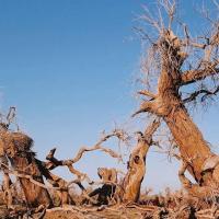 怪樹林在額濟(jì)納旗達(dá)來呼布鎮(zhèn)西南28公里處,所謂“怪樹林”,是數(shù)百年前因自然災(zāi)害——極端的干旱而致成片的胡楊枯死,且干燥的環(huán)境讓胡楊枯而不腐、挺立不倒,才使今人能觀賞到形狀各異的胡楊造型。