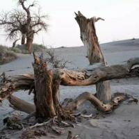 怪樹林以前是一片胡楊林,經(jīng)過風(fēng)沙的侵蝕,胡楊林漸漸變成了朽木狀的怪樹林。只有在那里你才能體會胡楊林的生命頑強(qiáng),三千年不死,死了三千年不倒,倒了三千年不朽。那里給你一個(gè)古戰(zhàn)場的唏噓不已的感覺。