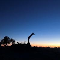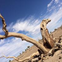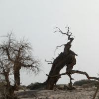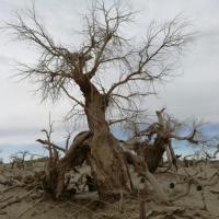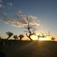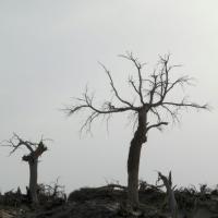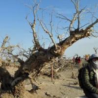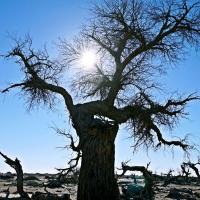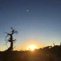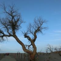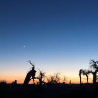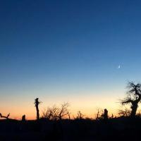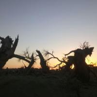 額濟(jì)納怪樹林一定要日出和日落時(shí)分來。傍晚的怪樹林蕭瑟、沉默。 在這里,哪怕是掉在地上的每一根纖細(xì)的枯干,都有著千年的歷史。單獨(dú)走進(jìn)怪樹林會(huì)毛骨悚然,那千奇百怪得死亡的狀態(tài)會(huì)讓你體會(huì)到死而不倒的精神。如果沒有審美以及悟性,很難感受到這死亡的美。遠(yuǎn)遠(yuǎn)看見怪樹林,只覺得是一片枯樹干,沒什么特別。走進(jìn)怪樹林時(shí),一種叫做死亡的盆景就猝然地呈現(xiàn)在面前。