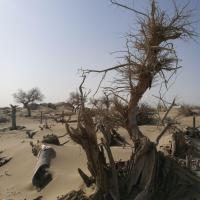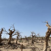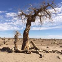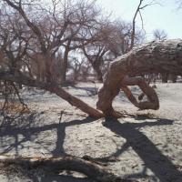 額濟(jì)納怪樹林,戈壁地上倒下了大片胡楊林,各種奇怪的姿態(tài)。當(dāng)然,也有一些還活著的。