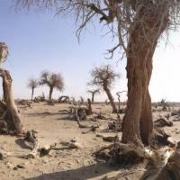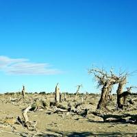 額濟(jì)納胡楊林由于自然因素,大片枯死的胡楊樹東倒西歪,神態(tài)各異,其奇異的造型給人以死一般的沉默和童話世界中的仙境奇觀