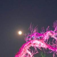 額濟(jì)納怪樹林景區(qū)有大片干枯的胡楊,是拍日落的好地方。晚上彩色射燈打在胡楊上五彩斑斕,像海底七彩的珊瑚。